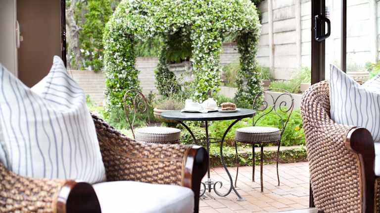 Morgens wird ein reichhaltiges kontinentales und englisches Frühstück angeboten, das entweder im Speisesaal oder im eigenen Zimmer serviert wird. Zudem werden Lunchpakete und Picknickkörbe bereitgestellt. Auf der Terrasse können Gäste eine Tasse Tee unter den schattenspendenden Weinreben geniessen.