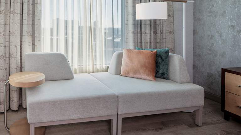 Die Zimmer sind mit Klimaanlage, Heizung sowie einem Kingsizebett oder einem Sofabett ausgestattet. Ein Kühlschrank, eine Kaffeemaschine und ein Schreibtisch mit ergonomischem Stuhl sorgen für Bequemlichkeit. Zur technischen Ausstattung gehören ein TV-Gerät mit Satellitenempfang, ein Telefon und Wifi. Die Badezimmer sind mit Dusche, Haartrockner und Kosmetikartikeln ausgestattet. Rollstuhlgerechte Zimmer mit barrierefreiem Badezimmer sind ebenfalls verfügbar.