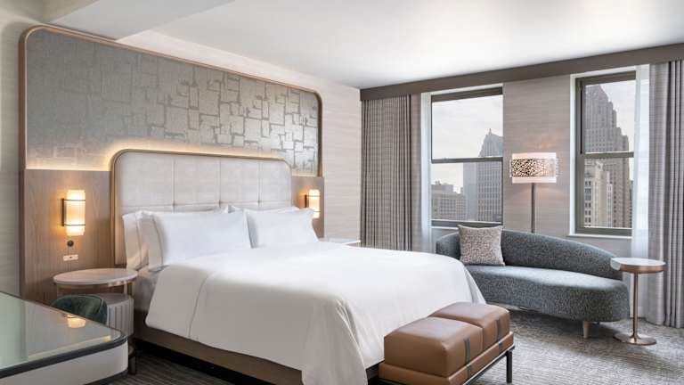 Die Doppelzimmer im The Westin Book Cadillac sind klassisch eingerichtet und bieten eine Fläche von ca. 31 - 37 m². Sie sind ausgestattet mit einem King Size Bett, individuell regulierbarer Klimaanlage, einem Safe ohne Gebühr, Schreibtisch, Bügeleisen und -brett sowie einem Kaffee-/Teezubereiter. Ein Plasma-TV sowie WLAN (gegen Gebühr) sind ebenfalls vorhanden. Die Badezimmer bieten entweder eine Badewanne oder Dusche, WC, Bademantel und Föhn.