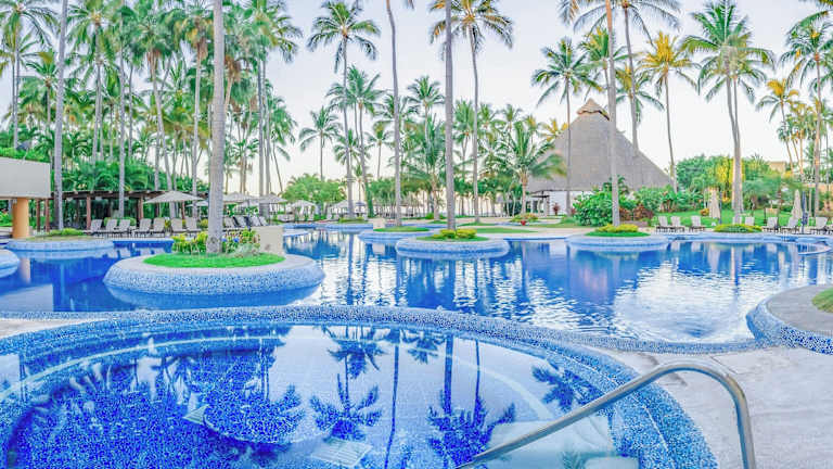 Das Hotel liegt direkt am Strand der schönen Marina Vallarta, umgeben von Palmen und herrlichen Gärten. Die Marina und verschiedene Bars und Restaurants befinden sich in der näheren Umgebung (ca. 500 m). Die Entfernung zum Stadtzentrum beträgt ca. 6 km, zum Golfplatz ca. 300 m.