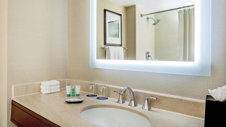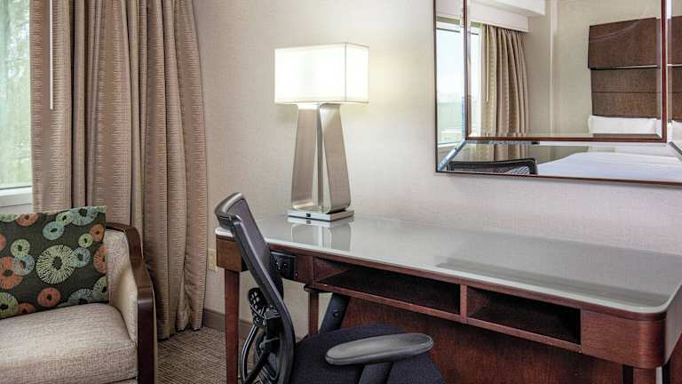 Die Zimmer sind mit Klimaanlage, Heizung, einem Kingsizebett, einem Sofabett sowie Zustellbetten ausgestattet. Zur weiteren Ausstattung gehören ein Safe, ein Schreibtisch, Kühlschrank, Mikrowelle und eine Tee-/Kaffeemaschine. Ein Telefon, TV-Gerät mit Satelliten-/Kabelempfang, Wecker und kostenloses Wifi sind ebenfalls vorhanden. Badezimmer sind mit Dusche und Badewanne ausgestattet und bieten Haartrockner, Bademäntel sowie Kosmetikartikel. Es sind rollstuhlgerechte Zimmer verfügbar.