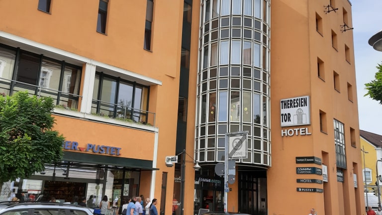 Das privat geführte Hotel Theresientor bietet moderne, heimelige Unterkünfte mit eigenem Bad, kostenlosem Wifi und Klimaanlage in allen Zimmern. Zu den Annehmlichkeiten gehören eine Untergrund-Parkiermöglichkeit sowie spezielle Abstellmöglichkeiten für Velos.
