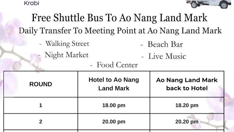Das Hotel liegt in der Gegend Ao Nam Mao von Krabi, nur rund 100 m vom Ao Nam Mao Pier entfernt, von wo aus die Gäste die nahen Inseln und tolle Attraktionen erreichen können. Vom Hotel aus sind es rund 5 km zum Ao Nang Beach und 15 km nach Krabi Town. Zudem befinden sich eine Fischfarm (rund 1,5 km) und der Strand Shell Fossil (rund 3 km) in der Nähe. Der Flughafen Krabi ist ca. 30 km entfernt.