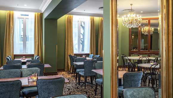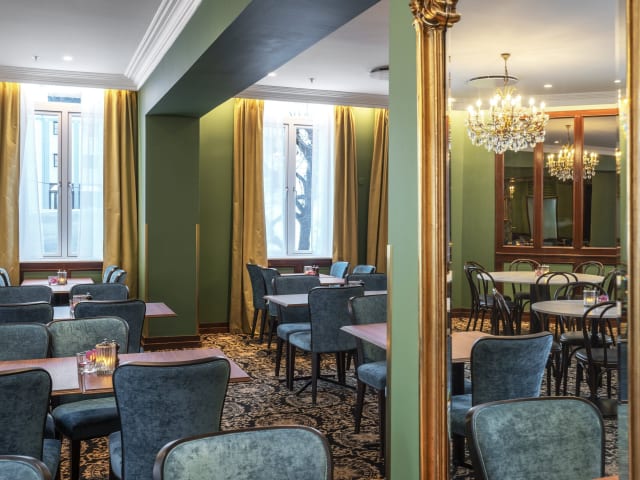 Im Hotel Thon Høyers stehen zahlreiche gastronomische Einrichtungen zur Verfügung. Gäste können im Restaurant Madame Blom speisen, das mit Kristalllüstern und einer umfangreichen Weinkarte aufwartet. Zusätzlich wird in der Lobbybar sowie im Kaminloungebereich eine Auswahl an erfrischenden Getränken angeboten. Das Hotel bietet ein Übernachtungspaket mit Frühstück an.