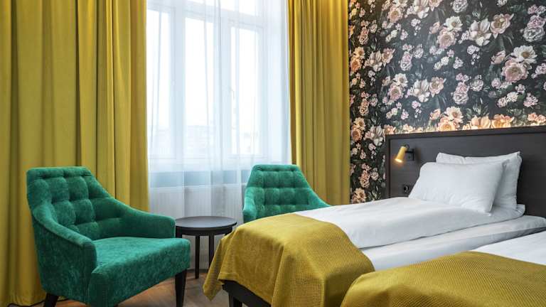 Die Zimmer sind modern eingerichtet und bieten ein angenehmes Raumklima durch eine Heizungsanlage. Jedes Zimmer ist mit einem Doppelbett, einem TV-Gerät, einem Telefon, einem Minitisch und einer Tee-/Kaffeemaschine ausgestattet. Ein Schreibtisch und eine Minibar sind ebenfalls vorhanden. Die Badezimmer verfügen über eine Dusche und eine Badewanne, ergänzt durch einen Haartrockner. Zudem sind rollstuhlgerechte Zimmer mit einem barrierefreien Badezimmer verfügbar.
