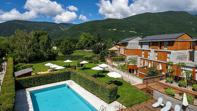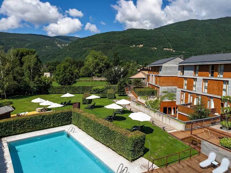 Das Hotel befindet sich im Stadtzentrum von Biescas, wunderschön gelegen in den Pyrenäen, nur wenige Kilometer von den Skigebieten Aramón Formigal und Panticosa entfernt. Der Natural Park Ordesas und Monteperdido ist etwa 40 Minuten entfernt. Der Flughafen in Zaragoza liegt ca. 140 km entfernt. Der Golfplatz ist ca. 12 km und die Skipisten ca. 15 km entfernt.