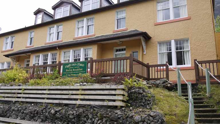 Das Tigh na Cheo befindet sich in einem ruhigen und malerischen Gelände mit Blick auf die Highlands. Es liegt direkt am West Highland Way, einem beliebten Wanderweg, der eine atemberaubende Landschaft bietet. Die Gegend um Loch Leven ist nur wenige Gehminuten entfernt und bietet viele Möglichkeiten zum Wandern und Mountainbiken. In der Nähe des Hotels finden Sie auch das National Ice Climbing Centre, das nur einen kurzen Spaziergang entfernt ist. Das Dorf Kinlochleven, mit seinen traditionellen Pubs und Restaurants, ist ebenfalls leicht zu erreichen und bietet eine Vielzahl von gastronomischen Einrichtungen.