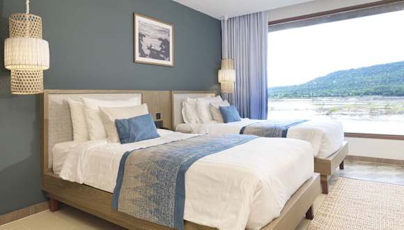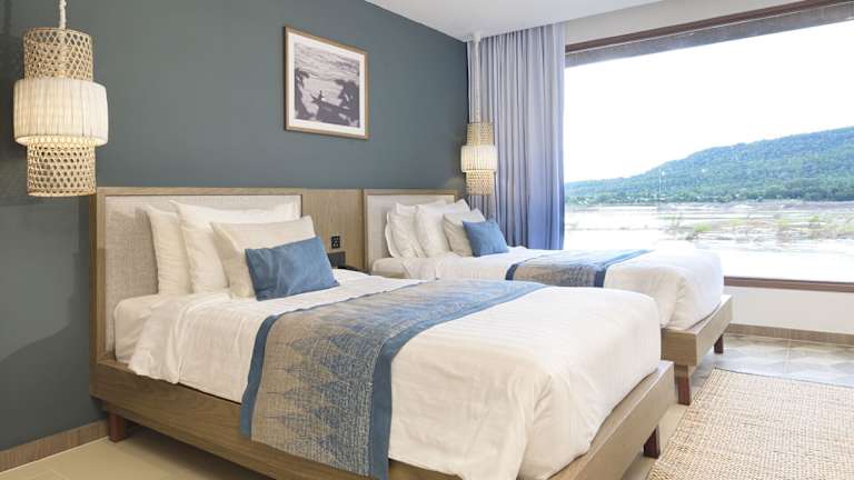 Die Zimmer und Villen im Tohsang bestechen durch eine Mischung aus thailändischem und balinesischem Design mit Khmer-Elementen. Jedes Zimmer verfügt über einen Balkon mit Blick auf den Mekong, Sat-TV, eine Minibar, Kaffee-/Teezubehör und einen Haartrockner.
