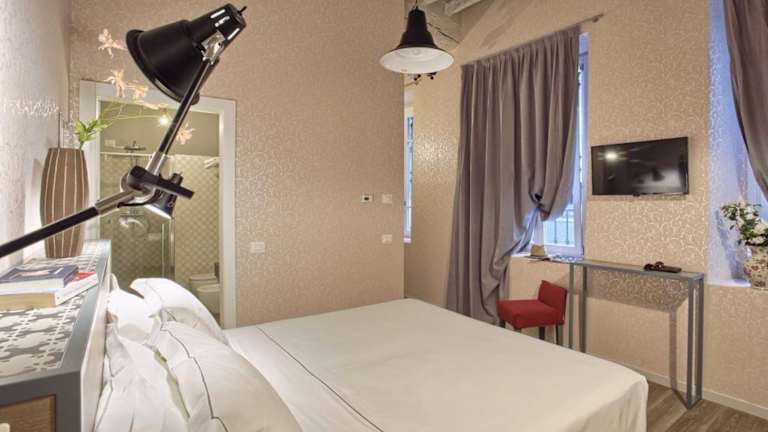 Die Zimmer sind klimatisiert und verfügen über ein Doppelbett, einen Safe, einen Schreibtisch sowie Fussbodenheizung. Ausserdem sind ein Telefon, Sat-TV und gratis Wifi vorhanden. Für zusätzlichen Komfort sorgen Hausschuhe und Kosmetikartikel im Badezimmer, das mit einer Dusche und einem Bidet ausgestattet ist. Es sind auch rollstuhlgerechte Zimmer verfügbar.