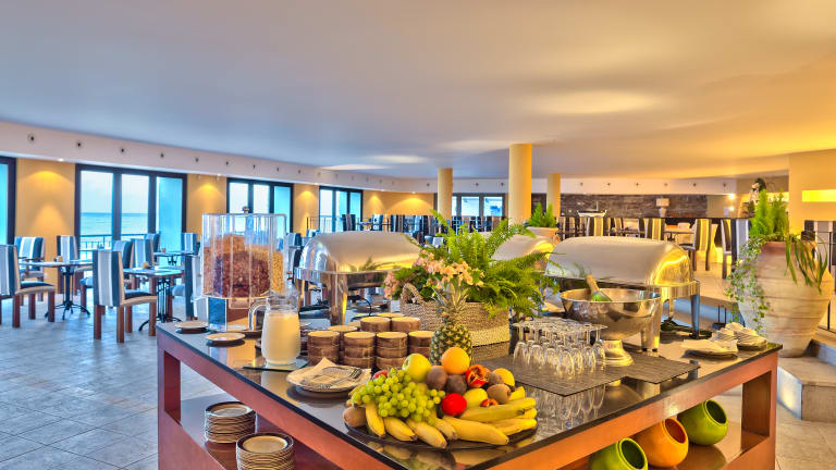 Zu den gastronomischen Einrichtungen des Hotels zählen zwei Restaurants, die regionale, italienische und internationale Gerichte anbieten und einen herrlichen Blick auf das Meer bieten. Des Weiteren gibt es ein Nichtraucherrestaurant, ein Café sowie eine Bar. Die Verpflegungsleistungen umfassen Halbpension, Vollpension und All-Inclusive, wobei Frühstück, Mittagessen sowie ein abwechslungsreiches Abendbuffet angeboten werden. Es sind auch speziell zubereitete Diätgerichte und Kindermenüs verfügbar.