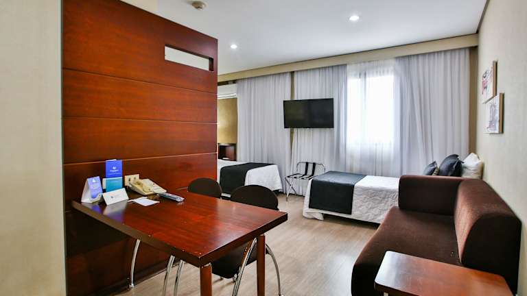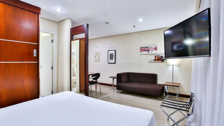 Das Transamerica Executive Chácara Santo Antônio ist ein modernes Hotel mit 143 Zimmern und einer Vielzahl an Annehmlichkeiten. Die Rezeption ist rund um die Uhr besetzt und das Haus bietet einen Aufzug, Gepäckaufbewahrung sowie einen Safe. WLAN ist für die Gäste kostenfrei verfügbar. Das Hotel stellt zudem einen Tourdesk für Ausflüge und ein Spielzimmer zur Verfügung. Mit einem Shuttlebus und einem Wäsche-Service werden weitergehende Dienstleistungen angeboten.