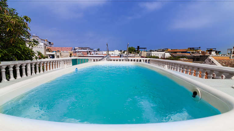 Das Hotel Tres Banderas bietet eine heimelige Atmosphäre mit einem Garten, der über einen Wasserfall verfügt, sowie zwei grosszügigen Terrassen und einer Dachterrasse mit Blick auf die Stadt Cartagena. Die Gestaltung des Hotels besticht durch satte tropische Farben und ist in allen Bereichen stilvoll dekoriert. Die Check-in-Zeit beginnt um 15:00 Uhr und der Check-out ist bis 12:00 Uhr möglich.