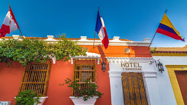 Das Hotel Tres Banderas befindet sich in der Innenstadt von Cartagena, nur 3 Blocks vom Karibischen Meer entfernt. Die Umgebung ist durch zahlreiche Strassencafés und Galerien geprägt, insbesondere in der Nähe der Plaza San Diego.