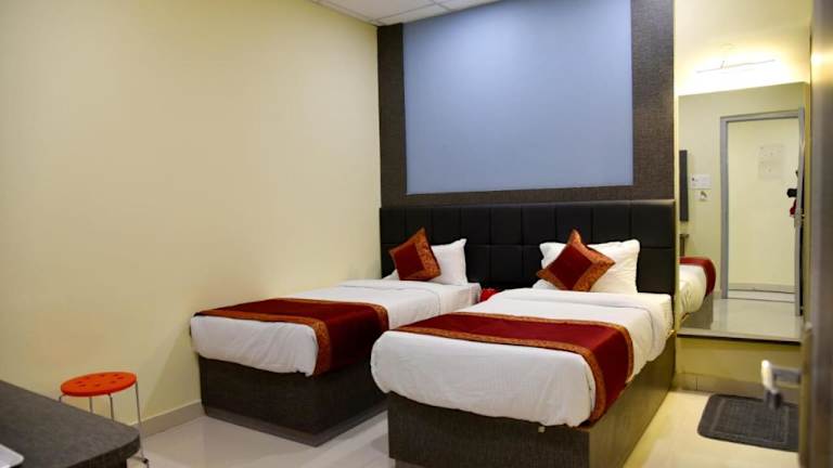 Das HOTEL TRIDEV GRAND bietet klimatisierte Zimmer mit kostenlosem WLAN und eigenem Badezimmer. Es verfügt über ein Restaurant und ermöglicht den Gästen den Zugang zu einem kostenlosen Privatparkplatz. Die Mitarbeiter an der Rezeption stehen rund um die Uhr zur Verfügung und sprechen Englisch sowie Hindi.