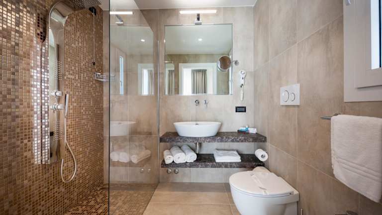 Jedes Zimmer im Hotel Tritone ist mit einem Schreibtisch ausgestattet und verfügt über Klimaanlage sowie einen Flachbild-TV. Einige Zimmer bieten einen schönen Meerblick. Die Zimmer sind zudem mit Bettwäsche und Handtüchern ausgestattet.