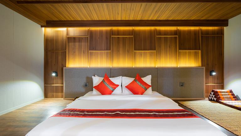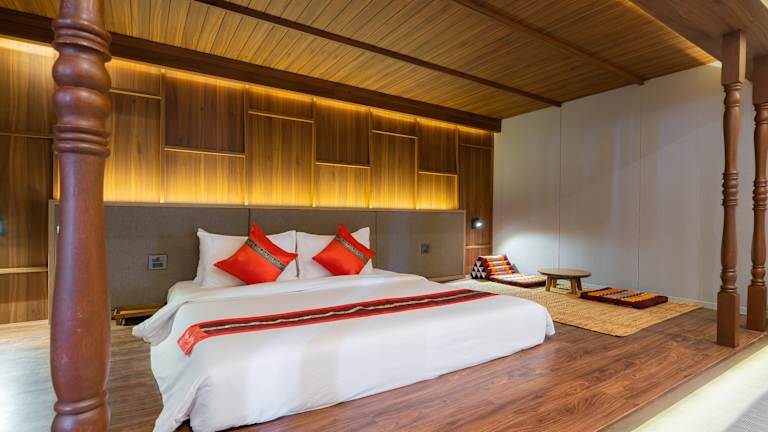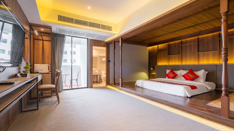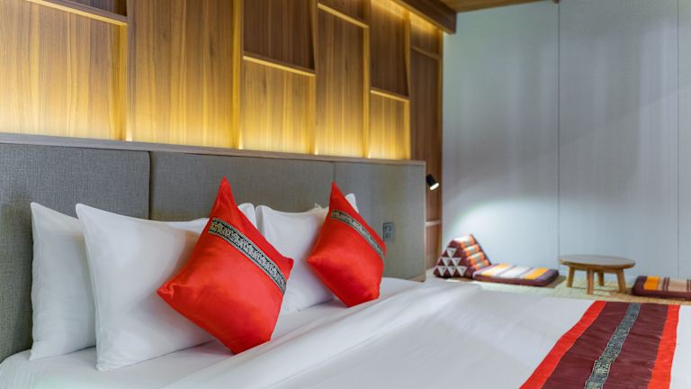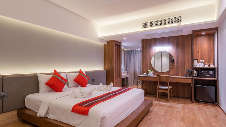 Die Zimmer sind im modernen thailändischen Stil eingerichtet und bieten Annehmlichkeiten wie eine Klimaanlage, Kühlschrank, Mikrowelle, Tee-/Kaffeekocher, Minibar und einen Flachbild-Kabel-TV. Ein Balkon oder eine Terrasse mit Blick auf die Stadt ist vorhanden. Die Badezimmer sind ausgestattet mit einer Dusche, Badewanne und bieten Kosmetikartikel sowie Bademäntel. Zudem stehen Nichtraucher- und Familienzimmer zur Verfügung.