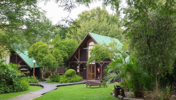 Die Garden Cabins bieten Platz für bis zu fünf Gäste und sind mit modernen Annehmlichkeiten ausgestattet, darunter WLAN, Klimaanlage, Fernseher sowie eine Terrasse mit Sitzgelegenheit. Jede Hütte verfügt zudem über eine Whirlpool-Badewanne. Die Unterkunft hat eine Gesamtanzahl von 34 Zimmern.