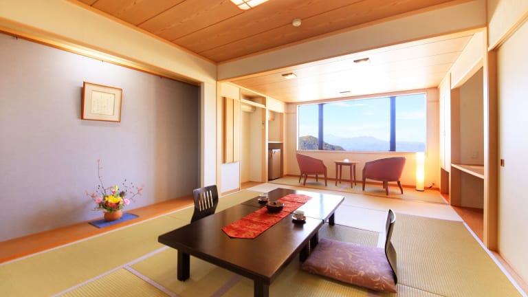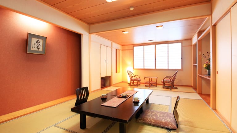 Die Zimmer sind im traditionellen japanischen Stil eingerichtet mit Tatamiböden und Futonbetten. Sie bieten Annehmlichkeiten wie einen TV, einen Wasserkocher und ein eigenes Bad mit Dusche.