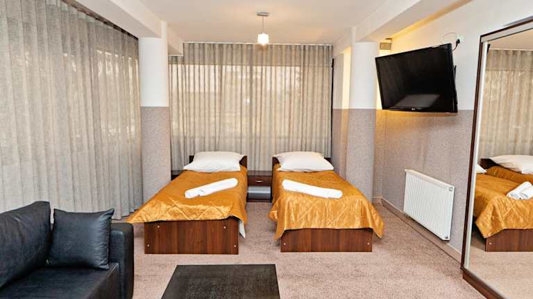 Die Zimmer im Hotel Turkus sind mit einem Kleiderschrank, einem Flachbild-TV, einem eigenen Badezimmer sowie Bettwäsche und Handtüchern ausgestattet. Die Verwendung von gegen das Coronavirus wirksamen Reinigungsmitteln sichert die Hygiene der Unterkunft.