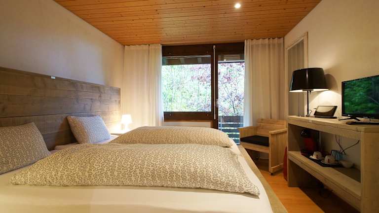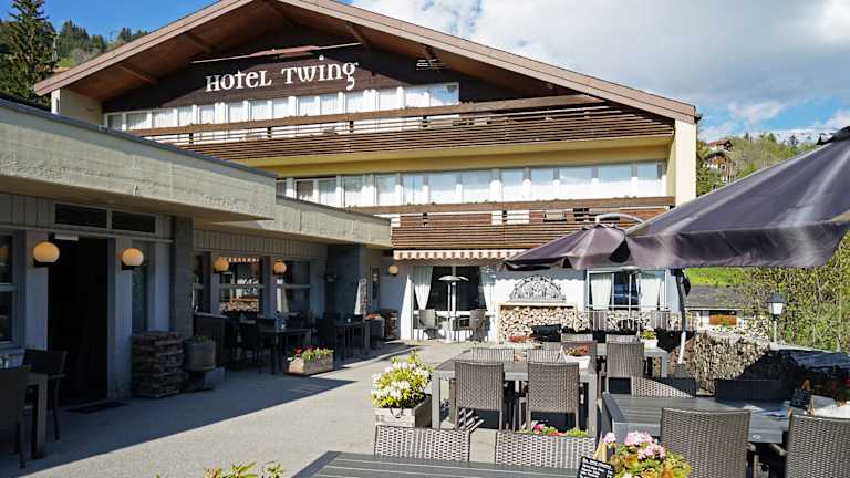Die Zimmer im Hotel Twing sind gemütlich und funktional eingerichtet. Jedes Zimmer verfügt über ein eigenes Bad und Sat-TV. Die Ausstattung umfasst auch kostenfreies Wifi, und viele Zimmer bieten zusätzlich einen Balkon mit Bergblick.
