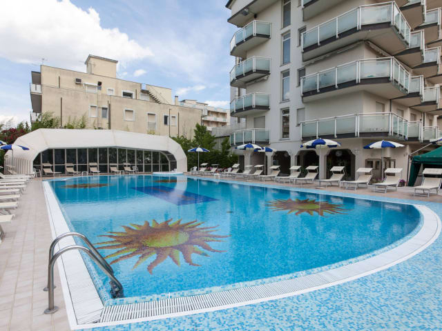 Das Hotel Universal verspricht Ihnen einen unvergesslichen Urlaub im Zeichen der Entspannung mit seinem goldfarbenen Strand, wo ein Wellness-Bereich, ein eleganter Pool und ein Technogym-Fitnessbereich zu finden sind. Ein familiäres Ambiente, das für diejenigen, die einen Urlaub mit der alltäglichen Pflege der Kinder verbinden möchten, besonders geeignet ist.