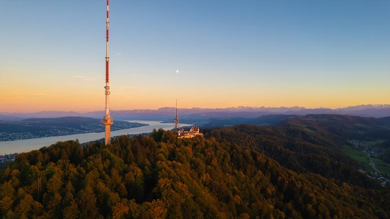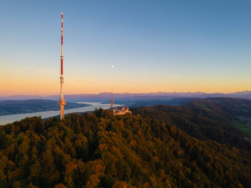 Hoch über der Stadt Zürich und dem Zürichsee mit Blick auf die Berge!