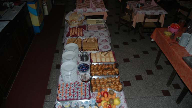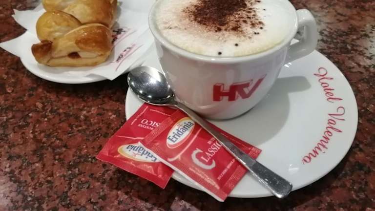 Ein italienisches Frühstück wird im Hotel Valentino angeboten. Zusätzlich bietet die Snackbar Getränke an, und es sind spezielle Speisen für diätetische Bedürfnisse auf Anfrage erhältlich.