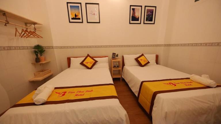 Die Zimmer in der Unterkunft HOTEL VĂN THÁI BÌNH sind mit einem Schreibtisch, einem Flachbild-TV und einem eigenen Badezimmer ausgestattet. Die Ausstattung umfasst zudem Bettwäsche, Handtücher, Klimaanlage und einen Kleiderschrank.