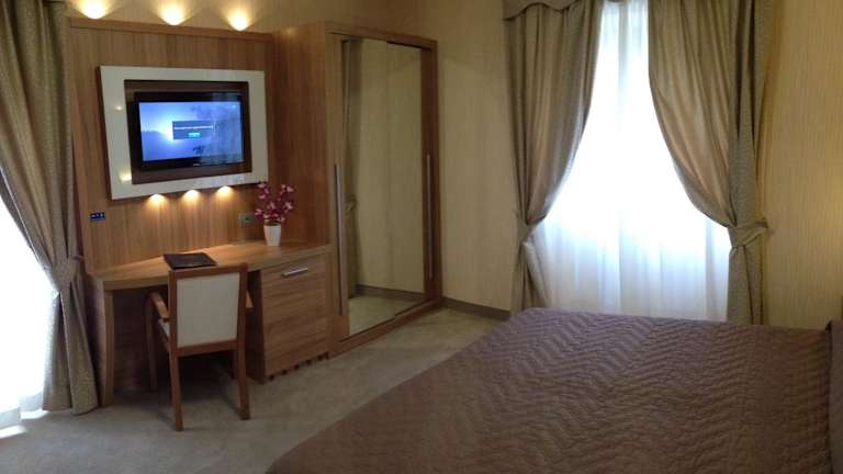 Das Hotel bietet ein italienisches Frühstück oder ein Buffetfrühstück an. Ein Restaurant sorgt für die kulinarische Verpflegung der Gäste.