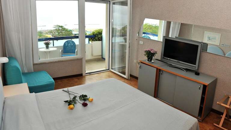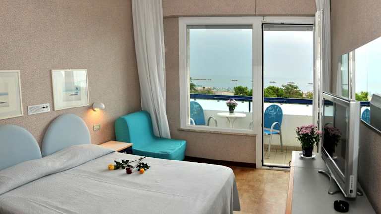 Die Zimmer im Hotel Venere sind klimatisiert und verfügen über einen Balkon, einen Flachbild-TV, einen Kühlschrank, einen Schreibtisch, einen Safe sowie ein eigenes Badezimmer mit Bidet.