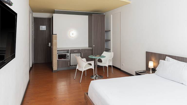 Die Zimmer verfügen über einen Balkon, ein Doppelbett oder ein Kingsize-Bett und separate Schlafzimmer. Zustellbetten können angefordert werden. Zur Ausstattung gehören ein Safe, eine Minibar, ein Kühlschrank, eine Mikrowelle, eine Tee-/Kaffeemaschine, Telefon und TV mit Pay-per-View-Option, sowie gratis Wifi. Die Badezimmer sind mit Dusche und Badewanne ausgestattet, Haartrockner und Kosmetikartikel sind ebenfalls vorhanden. Das Hotel bietet Nichtraucherzimmer und rollstuhlgerechte Zimmer an.