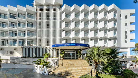Das Hotel Vibra Riviera ist ein drei Sterne Hotel Hat seinen Standort wenige Meter vom dem Strand von der Bahia de San Antonio entfernt und mit einem herrlichen Meerblick. In der Umgebung des Hotels befinden sich viele Geschäfte, Souvenirs, Boutiquen, Apotheke, und Entertainment für die ganze familie. Das Zentrum von San Antonio ist nur 3 km entfernt. Wenige Meter vom Hotel werden Sie den Strand Punta Xinxó finden. In der Nähe des Hotels befindet sich eine Bushaltestelle die Sie mit den verschiedenen Buchten verbindet sowie mit dem Zentrum von San Antonio. Sie haben auch die Möglichkeit die Boote die vom Strand abfahren zu benutzen. In der Umgebung können Sie viele Sportarten ausüben so wie Wasserski, Tauchen, Tennis, Parasailing, mit dem ‘"Banana boat’’fahren, Mini golf.
