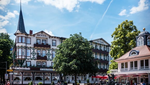Das Hotel Victoria befindet sich direkt an der Fussgängerzone in Bad Harzburg, ideal gelegen für Ausflüge und Aktivitäten. Die Umgebung bietet Zugang zu einem Golfplatz sowie zahlreiche Restaurants und Geschäfte in der Nähe. Zur Altstadt und dem Stadtzentrum sind es nur kurze Wege, und die Entfernung zum Naturpark Harz und zur Burgberg-Seilbahn beträgt etwa 1,5 km. Die Höhe des Ortes liegt bei 317 m.