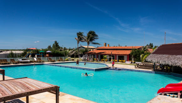 Zur Abkühlung hat das Hotel Vila Jardim eine große Süßwasserpoolanlage mit getrenntem Becken für Kinder und Rutschen für Jung und Alt. NEU BEI UNS Hauseigener Kite-Storage und Grünfläche zum starten und landen direkt am Strand. BEACH-BOY, Pumpen, Kompressor, Relax-Zohne, Barbereich direkt an der Kiterwiese....