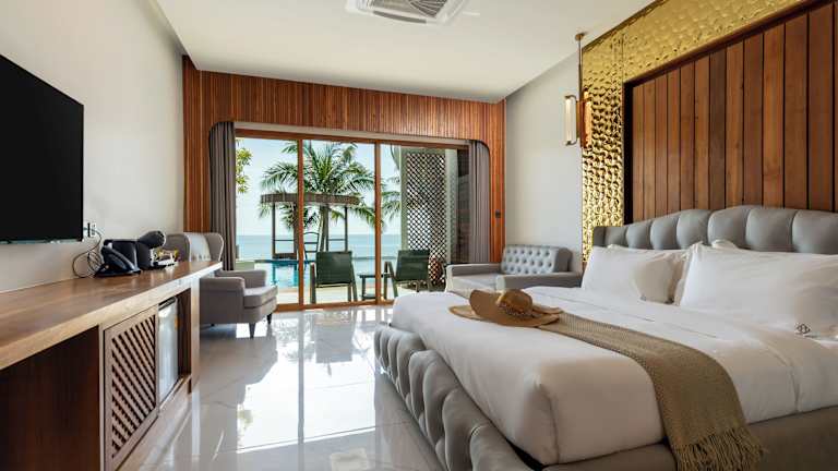Die Zimmer in der Unterkunft Hotel Villa AoKhanom Beachfront sind klimatisiert und verfügen über ein eigenes Badezimmer mit Dusche. Jedes Zimmer hat einen Balkon mit Meerblick und ist mit einem Schreibtisch, einer Kaffeemaschine, einer Minibar, einem Safe, einem Flachbild-TV und einer Terrasse ausgestattet. Zu den weiteren Ausstattungsmerkmalen gehören ein Wasserkocher, ein Kleiderschrank sowie Wohneinheiten mit einer Veranda oder Terrasse.