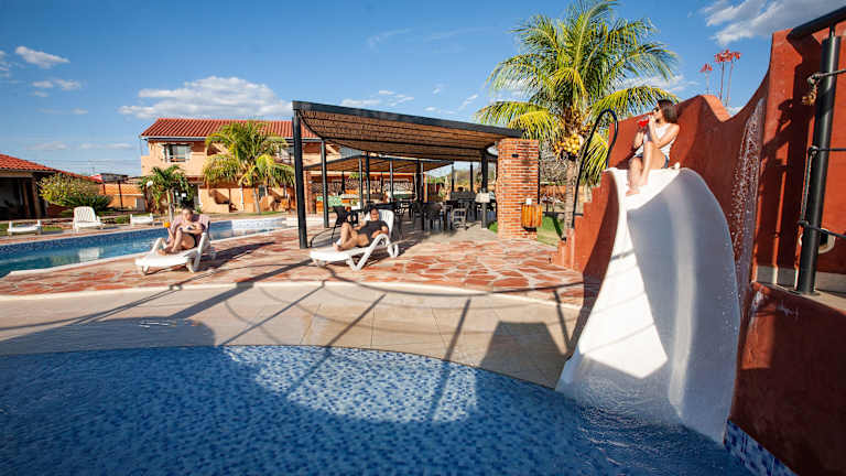 Das Hotel La Villa Chiquitana liegt nur 5 Gehminuten vom Hauptplatz San Jose de Chiquitos entfernt. In der Umgebung gibt es zahlreiche Sehenswürdigkeiten wie das Mondtal und den historischen Nationalpark Santa Cruz la Vieja. Der Busbahnhof ist ebenfalls nur einen 15-minütigen Spaziergang entfernt, so dass Sie bequem die Umgebung erkunden können.