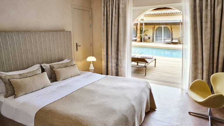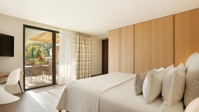 Die modernen Zimmer sind in Creme- und Schokoladentönen gestaltet und verfügen über einen LCD-TV sowie kostenlosen Wifi-Zugang. Einige Zimmer besitzen eine private Terrasse, die direkt zur Poolterrasse führt.