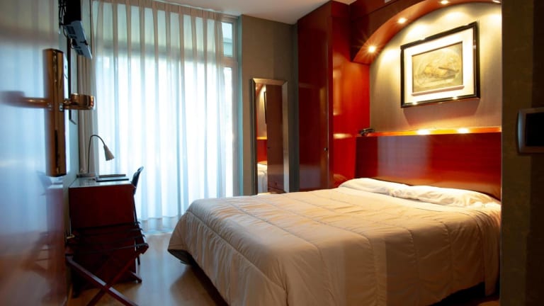 Die Zimmer sind klimatisiert und in warmen Farben gehalten. Sie verfügen über Parkett, ein Doppelbett sowie Balkon oder Terrasse, von wo aus die Gäste einen Stadtblick geniessen können. Ein Safe und eine Minibar sind ebenfalls vorhanden, ebenso wie ein Bügelset, eine Hosenpresse, ein Telefon, ein TV-Gerät mit Flachbildschirm und kostenfreies Wifi. Das Badezimmer ist mit einer Dusche und einer Badewanne ausgestattet und ein Haartrockner steht ebenfalls zur Verfügung.