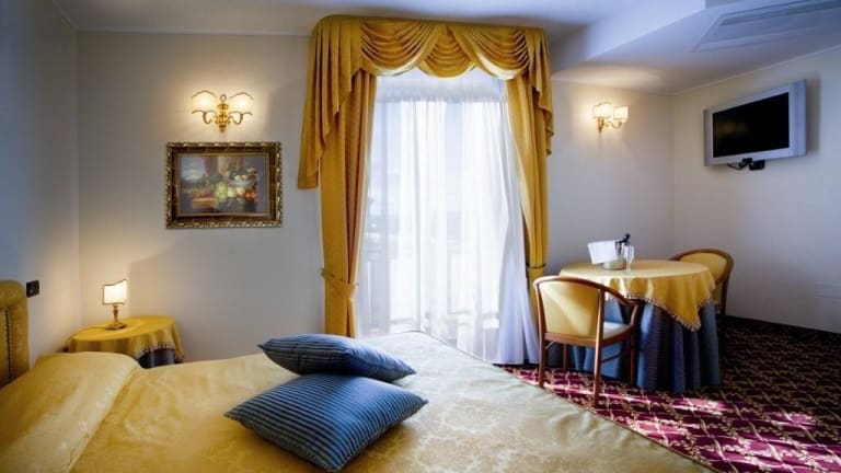 Die Zimmer im Hotel Villa del Sorriso sind mit einem Kleiderschrank, einem Flachbild-TV und kostenlosen Pflegeprodukten ausgestattet. Viele Zimmer bieten zudem einen Balkon und einige Wohneinheiten bieten Aussicht auf die Stadt. Die Ausstattung umfasst auch ein eigenes Badezimmer.