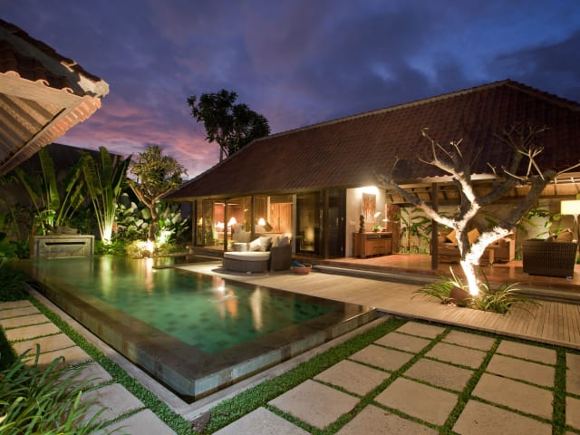 Die Villen sind modern indonesisch dekoriert und verfügen über einen eigenen Pool mit Massagedüsen, eine Küchenzeile und einen Essbereich. Die Zimmer bieten Klimaanlage, einen Flachbild-Sat-TV, eine iPod-Dockingstation und ein Freiluftbad mit Badewanne. Jedes Zimmer verfügt zudem über eine Minibar, einen Safe und kostenfreies WLAN.