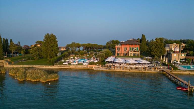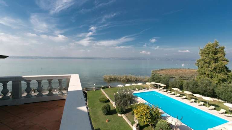 Das Hotel Villa Pioppi befindet sich in Sirmione, umgeben von einem 2 ha grossen Park am Ufer des Gardasees. In der Nähe erreichen Gäste nach einem etwa 15-minütigen Spaziergang das Castello Scaligero und profitieren von einer ruhigen und naturnahen Lage.