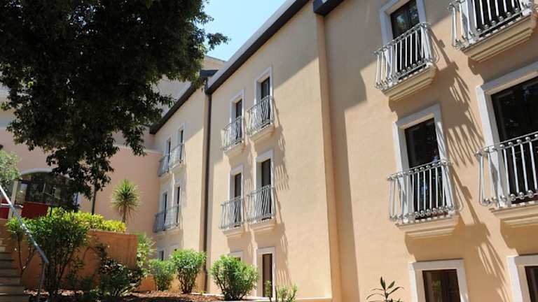 Das Hotel Villa Rosa befindet sich in einem ruhigen und grünen Stadtteil von Martina Franca, nur 15 Minuten vom Stadtzentrum entfernt. Die Umgebung bietet eine angenehme Atmosphäre zur Entspannung.