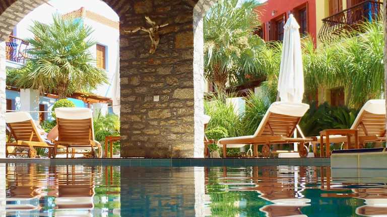 Das Hotel Village befindet sich in zentraler Lage in der Stadt Symi. Umgeben von einem 500 m² grossen Garten, der Palmen und gepflasterte Innenhöfe umfasst, bietet es eine ruhige und einladende Atmosphäre. Der Hafen von Symi ist nur 200 m entfernt und der Strand von Nos ist nach etwa 1,3 km erreichbar.