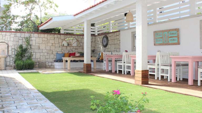 Das Villamer Alaçatı ist ein familiengeführtes Hotel in einer ruhigen Gegend, nur wenige Gehminuten vom Basar von Alacati entfernt. Mit seinem charmanten Garten und den hellen, klimatisierten Zimmern bietet es den perfekten Rückzugsort für einen entspannten Aufenthalt. Genießen Sie das reichhaltige regionale Frühstück und erkunden Sie die nahegelegenen Strände und das Gastronomieviertel von Alacati.