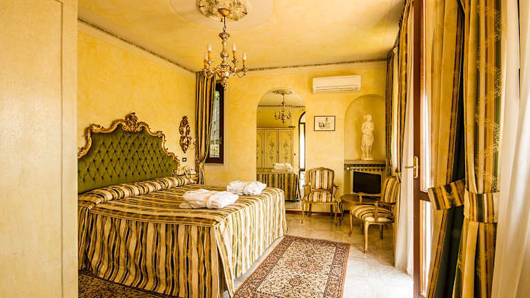 Die Zimmer sind im klassischen Stil eingerichtet und verfügen über eine Klimaanlage, ein eigenes Bad und viele Annehmlichkeiten wie Minibar, Safe und SAT-TV. Viele Zimmer bieten einen Balkon oder eine Terrasse mit Blick auf den Garten oder den See. Das Hotel bietet Familienzimmer, Nichtraucherzimmer sowie rollstuhlgerechte Zimmer an.
