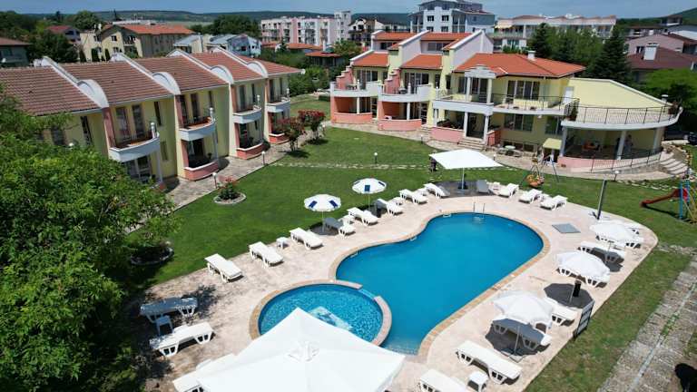 Das Hotel Villen Valentina befindet sich in ruhiger Lage, 450 Meter vom Strand des Schwarzen Meers entfernt. Die Ferienorte Albena und Goldstrand sind innerhalb von 10 Fahrminuten erreichbar. Besucher haben die Möglichkeit, das berühmte mittelalterliche Kloster Aladscha und den botanischen Garten in Balchik, beide 10 Kilometer entfernt, zu erkunden. Die Hauptstrasse Kranevo mit diversen Restaurants und Geschäften liegt in 500 Metern Entfernung.