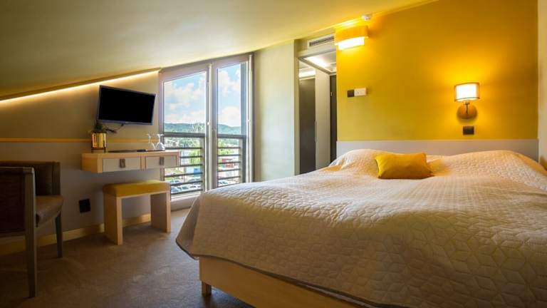 Die klimatisierten Zimmer im Downtown Hotel Visegrád bieten Komfort und Bequemlichkeit. Alle Zimmer verfügen über kostenfreies WLAN, Kabel-TV und eine Minibar. Die Superior Zimmer wurden im November 2011 renoviert und bieten einen Balkon mit Blick auf die Donau oder die Burg Visegrád.