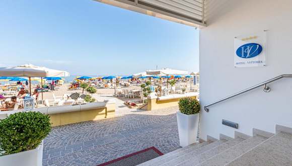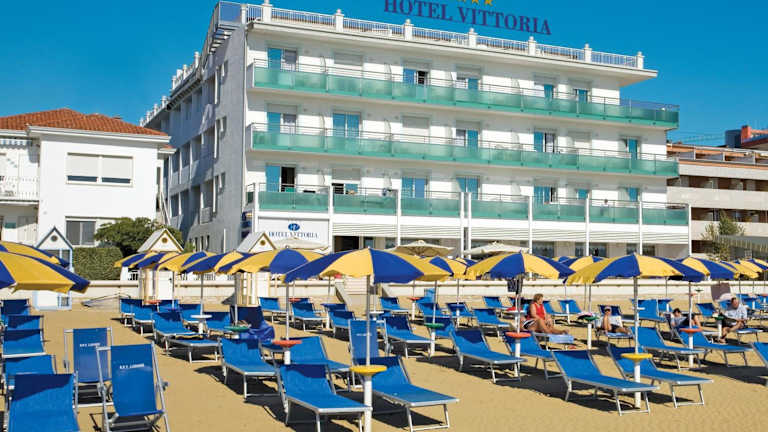 Das Hotel Vittoria befindet sich direkt am hoteleigenen Strand in Lignano. Der Jachthafen von Lignano ist nur 400 Meter entfernt, während der Bahnhof Latisana 25 Autominuten Entfernung hat.