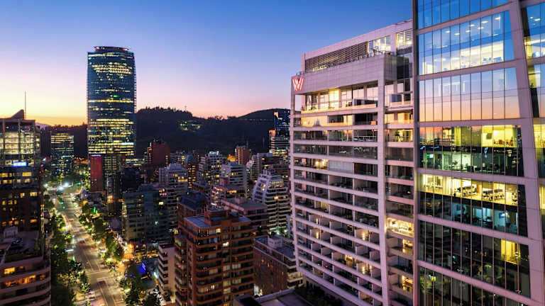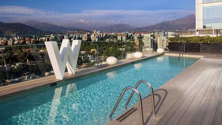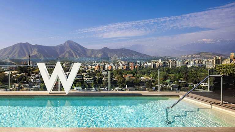 Das elegante und anspruchsvolle Hotel W Santiago bietet einen Rundumservice mit luxuriösen Zimmern und einem Pool auf dem Dach. Die Räume zeichnen sich durch einen herrlichen Panoramablick auf die Anden aus und wurden modern gestaltet. Das Hotel verbindet stilvolles Design mit den natürlichen Elementen der Umgebung und bietet einen Ort zum Erholen und Feiern.