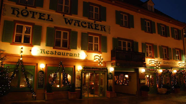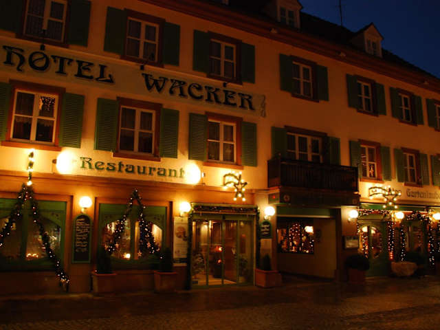 Das Restaurant im Hotel Wacker serviert traditionelle Küche aus der Region. Zudem stehen eine Bar und ein Bistro zur Verfügung, wo Gäste entspannen können.
